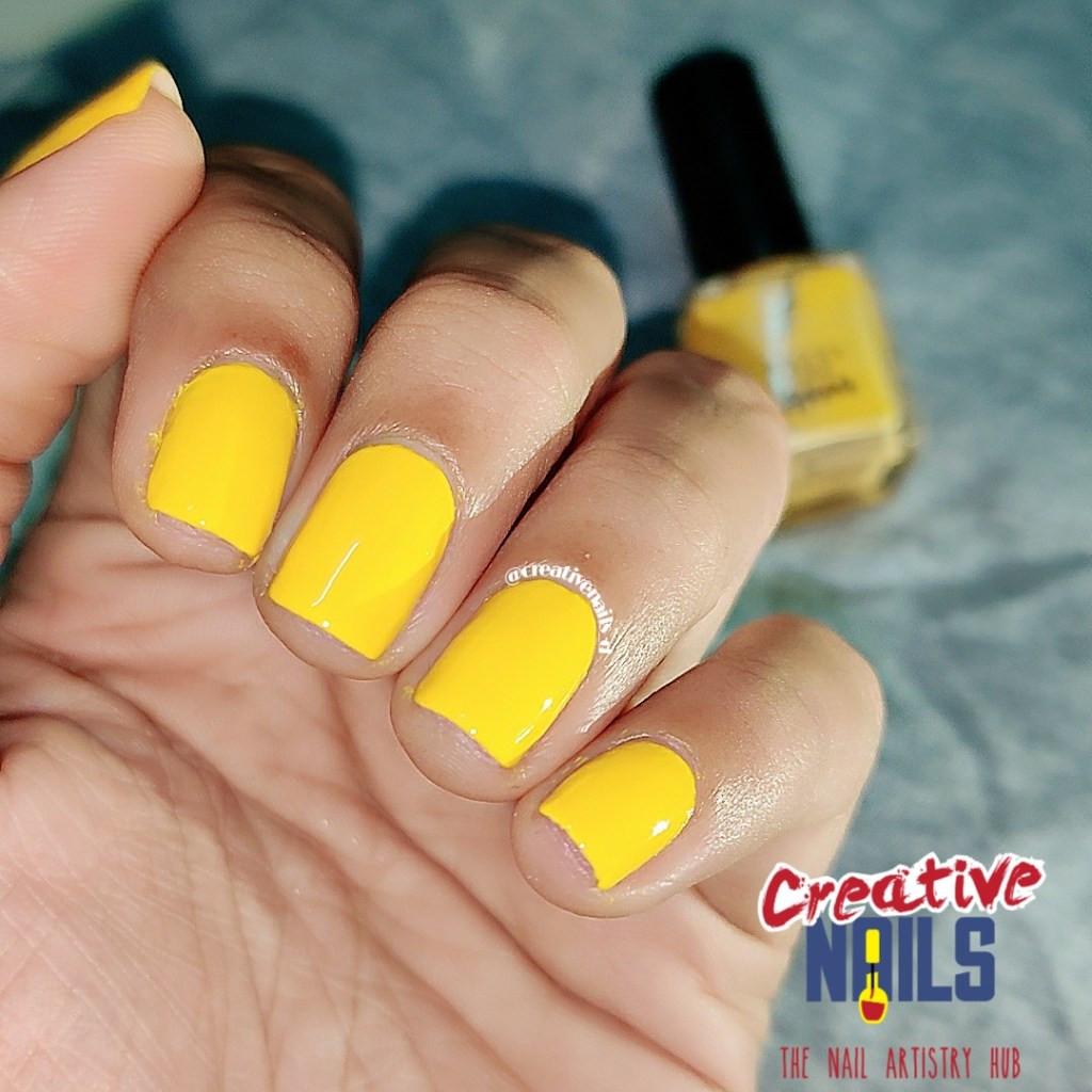 This is a pretty shade of yellow. Requires 3-4 thin coats to be perfectly opaque and gives you a creamy finish. When I had purchased it was Rs. 109/- for 8ml bottle. Decent pricing with great quality. Must have at least few shades in your collection.