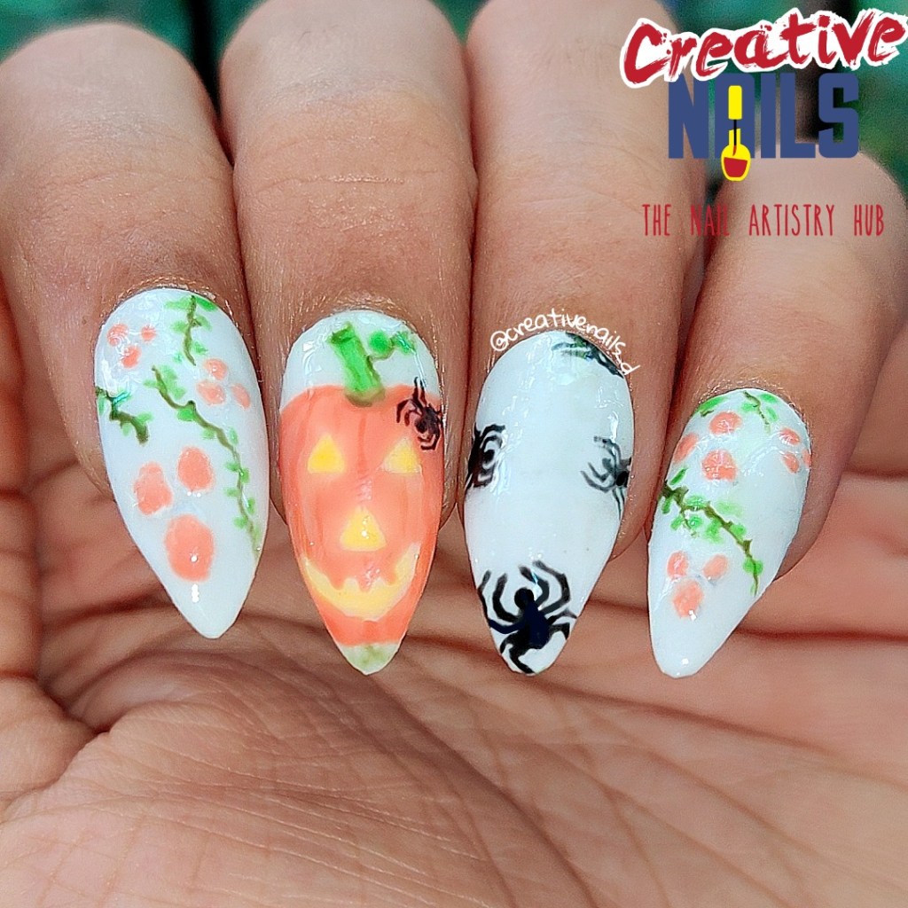 Tips: You can use regular nail polish as well to create the same design. Leaf can be drawn using Acrylic colors.