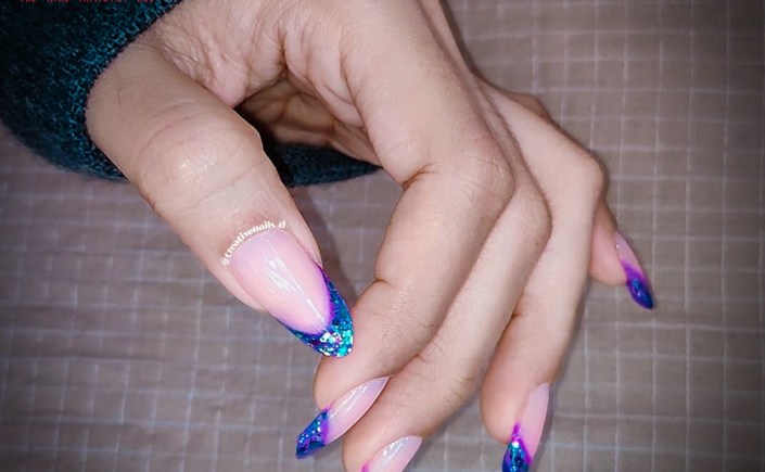 3D french nail extensions are becoming popular from sometime now. In 3D french extension french part can be encapsulated with foils, gel polish, glitter, rhinestones, mylars, 3D flowers, chrome powder, sequins, beads etc.
